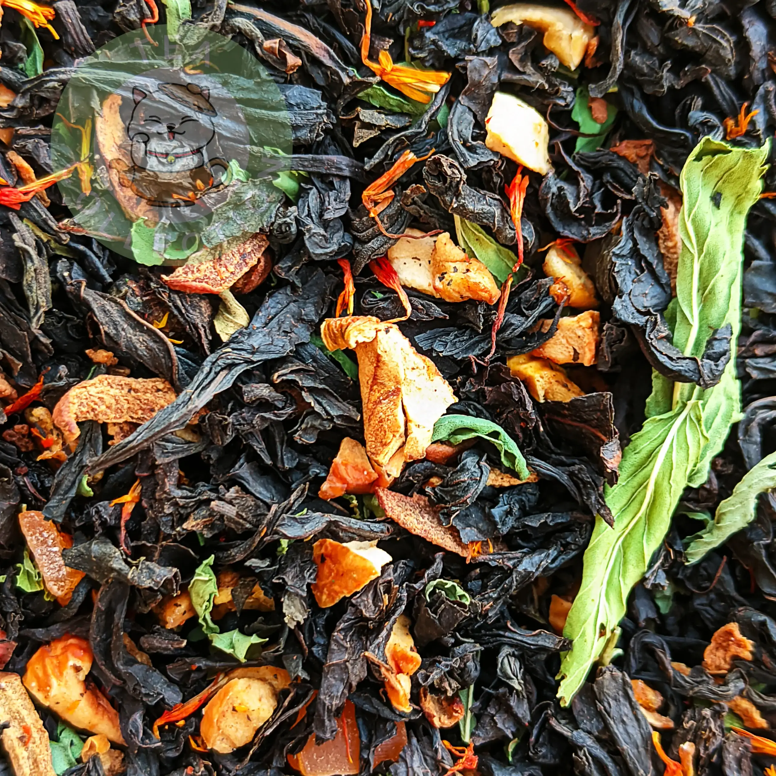 Состав: Чай чёрный, яблоки сушёные, кусочки айвы и персика, мята, сафлор.