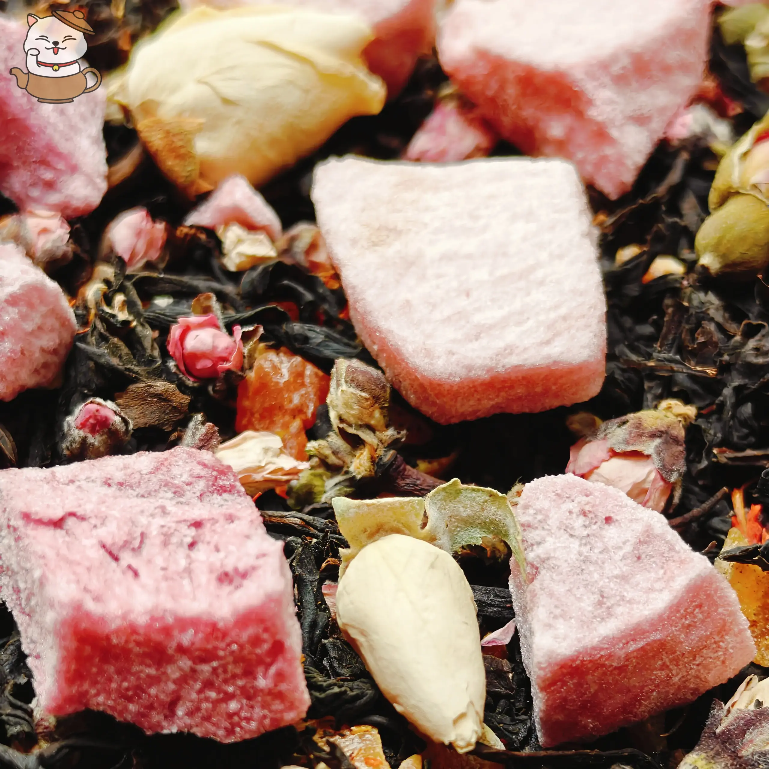 Купаж тонизирует, улучшает настроение, дарит энергию без резких скачков. Благодаря сочетанию фруктов и лепестков, он не только приятен на вкус, но и благотворно влияет на состояние кожи, пищеварения и эмоционального фона. Идеален для чайных пауз дома и на работе.