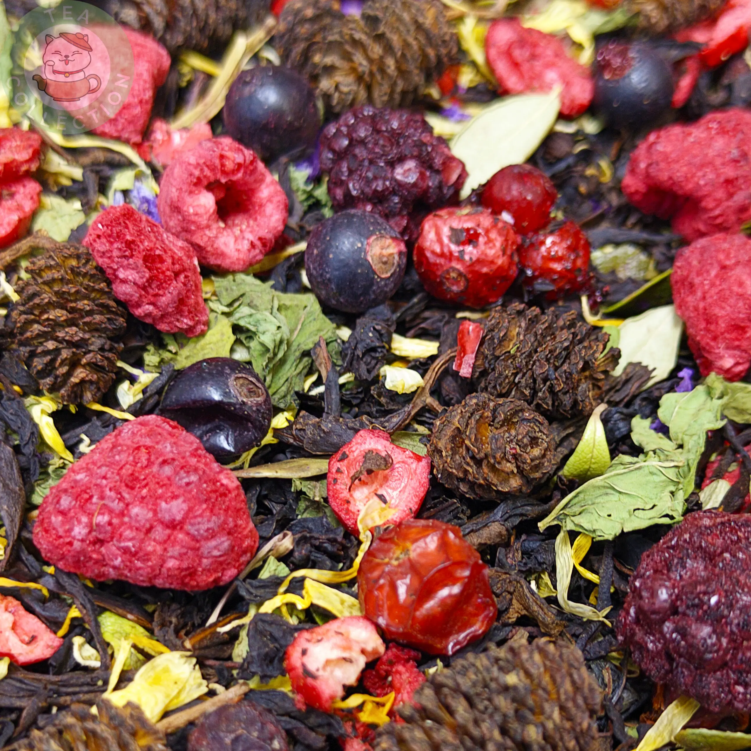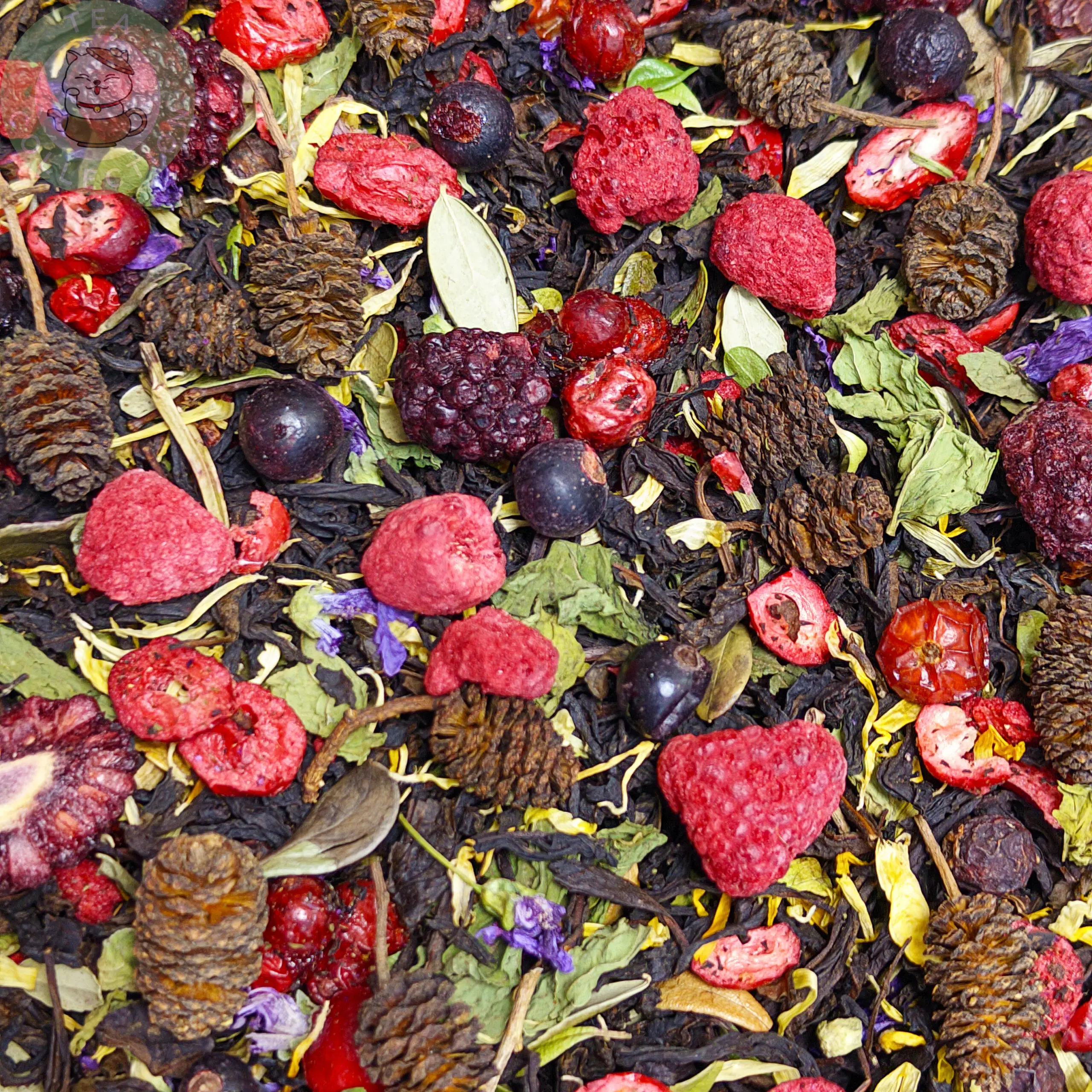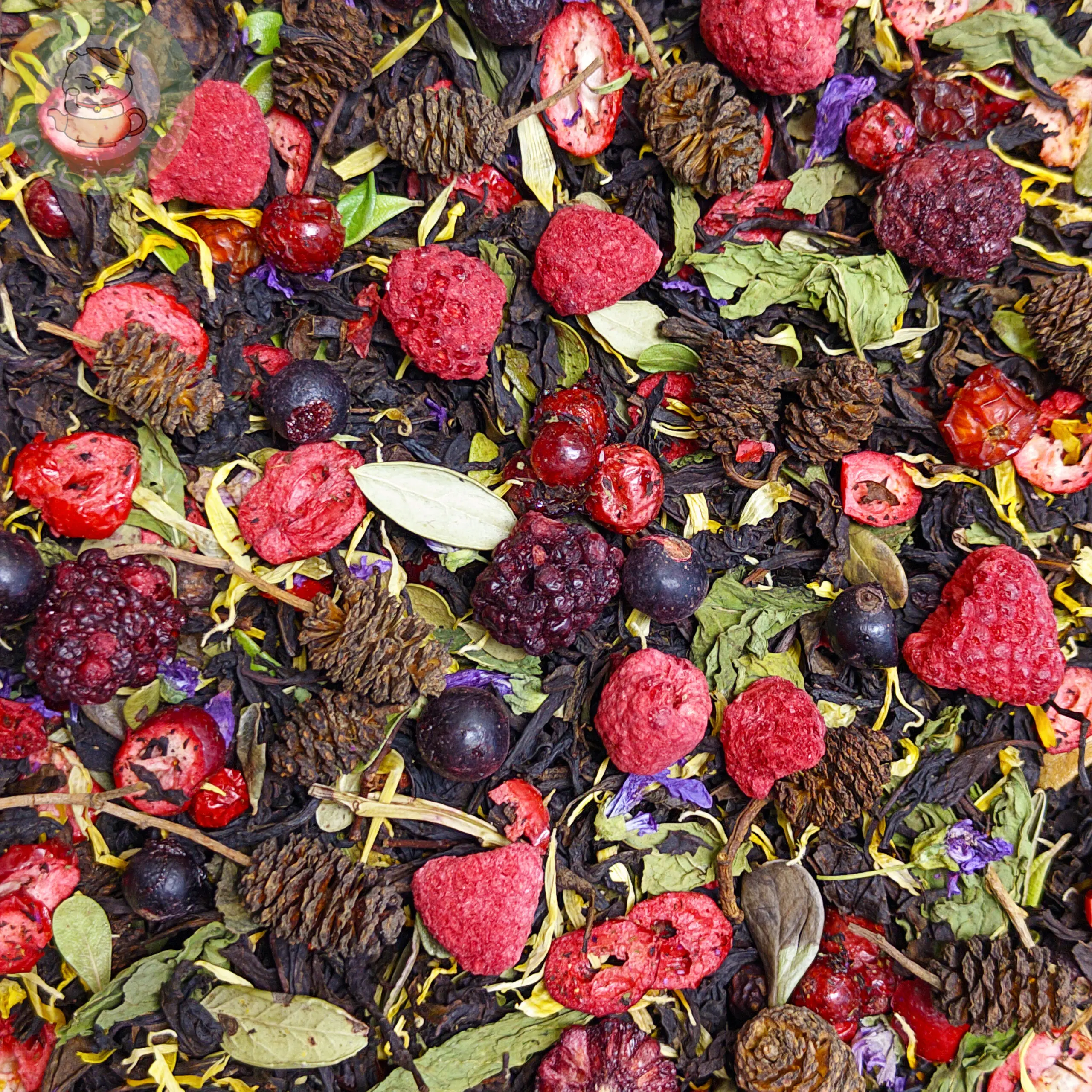 Состав: Чёрный чай, смородина, клюква, василёк, календула, лист брусник, шишка, арония, боярышник, мята, малина, ежевика, шиповник