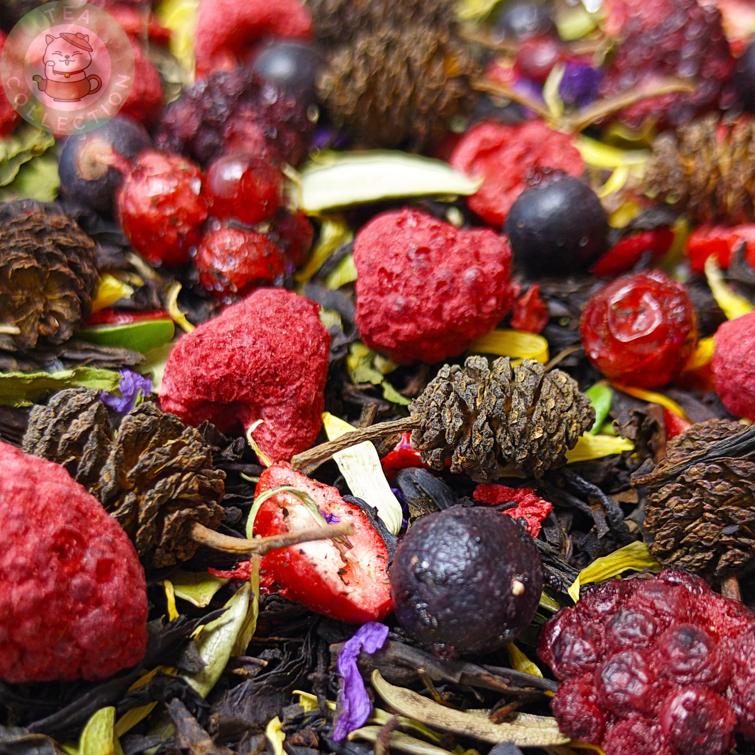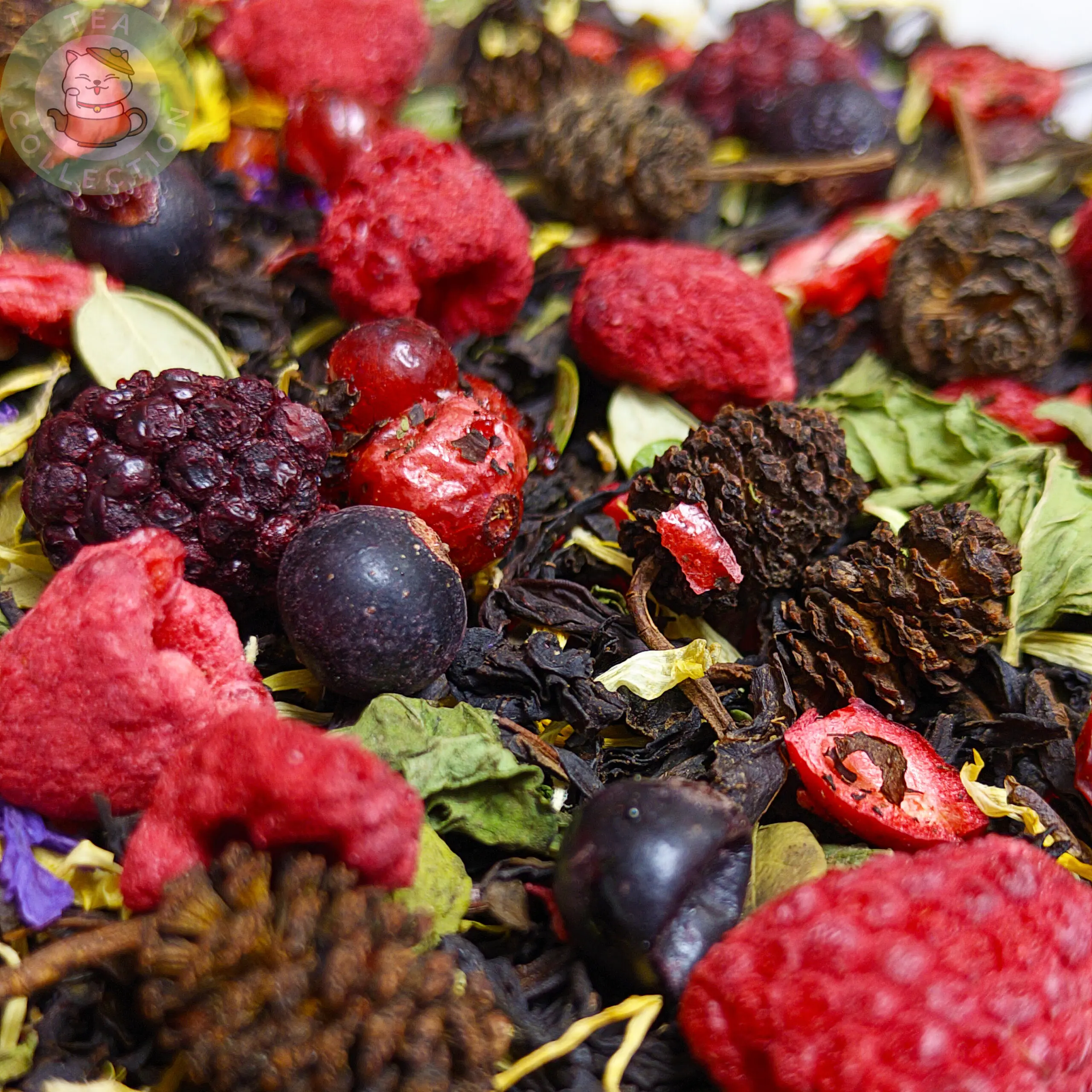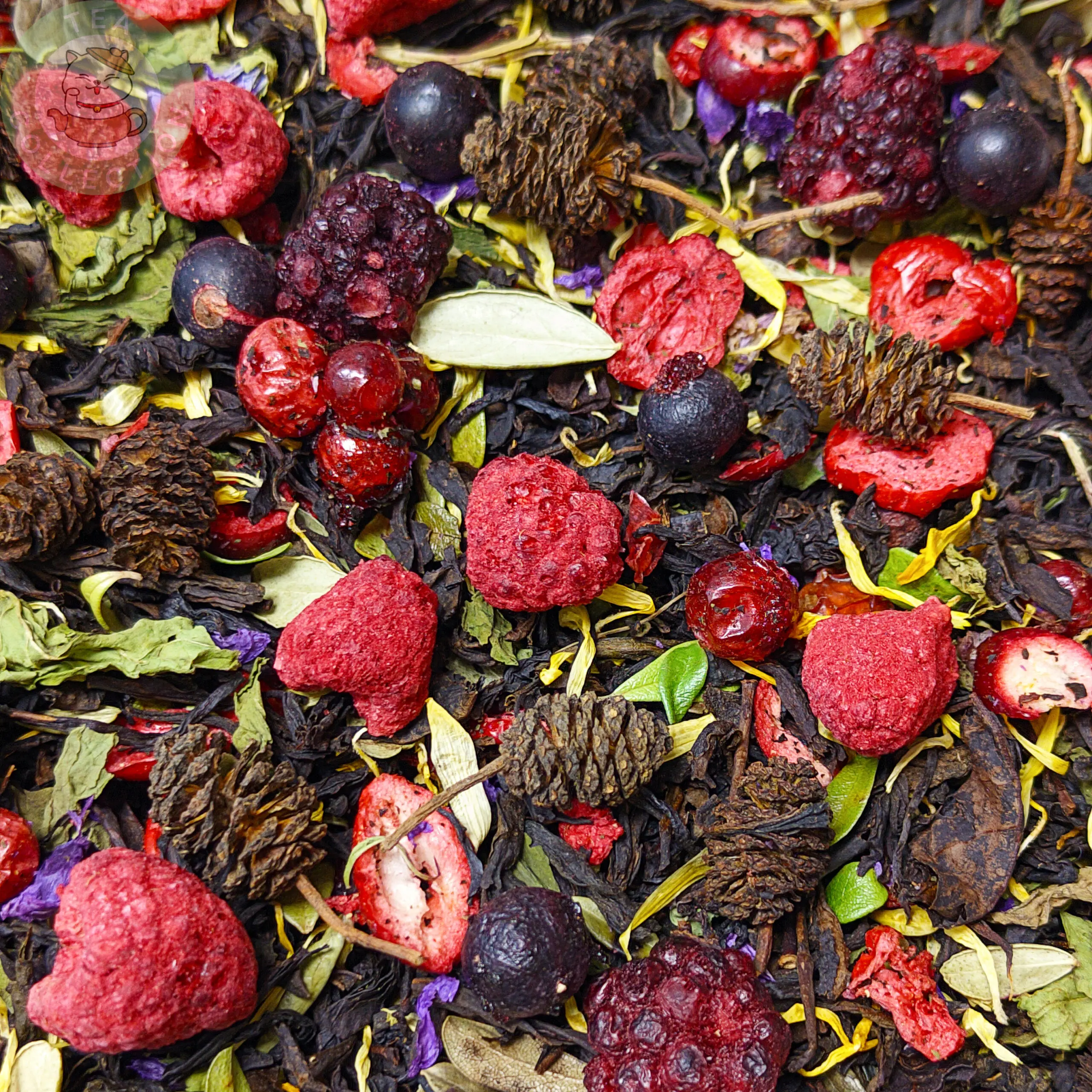 Состав: Чёрный чай, смородина, клюква, василёк, календула, лист брусник, шишка, арония, боярышник, мята, малина, ежевика, шиповник